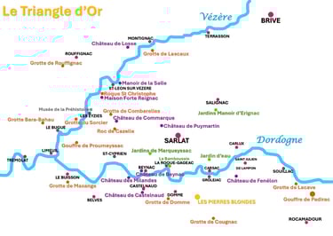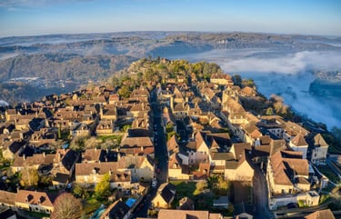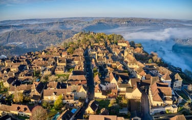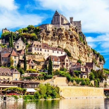 Dominant la rivière Dordogne, le village de Beynac-et-Cazenac est un véritable trésor du Périgord Noir. Avec son château médiéval perché sur une falaise vertigineuse, il offre des vues panoramiques à couper le souffle. Ses ruelles pittoresques, bordées de maisons en pierre dorée, vous invitent à un voyage dans le temps. L'histoire riche et la beauté naturelle de Beynac en font une destination incontournable pour les amateurs de patrimoine et de paysages.