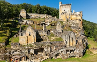 Le Château de Commarque, situé près des Eyzies, est une forteresse médiévale pleine de mystères. Perché sur un éperon rocheux, il offre une vue imprenable sur la vallée de la Beune. Abandonné pendant des siècles, il a été redécouvert au XXᵉ siècle. Lieu de légendes et d'histoire, il est entouré de mystères à découvrir.
