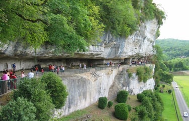 Située au cœur de la Vallée de la Vézère, La Roque Saint-Christophe est une falaise monumentale de 1 km de long et 80 mètres de haut, sculptée par la nature et occupée par l’Homme depuis 55 000 ans.
