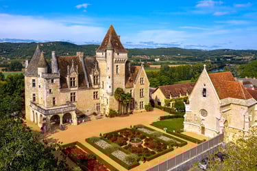 Le Château de Puymartin, niché au cœur du Périgord Noir, est un joyau d'architecture médiévale et Renaissance. Construit au XVe siècle, il séduit par son élégance et ses légendes, notamment celle de la Dame Blanche qui hanterait les lieux. Ses intérieurs richement décorés et ses jardins en font une étape incontournable pour découvrir l'histoire et le charme du Périgord.