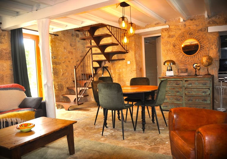Les Vinaigriers, un gîte authentique de 70m², vous accueille dans une ambiance chaleureuse, avec ses murs en pierre, son poêle à bois et sa décoration originale et raffinée.